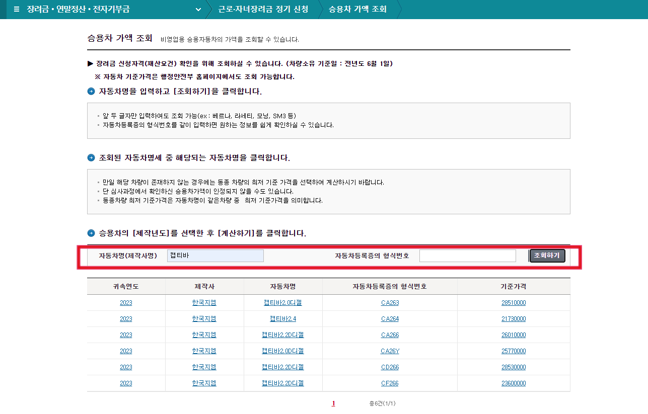 - 승용차 : 포함됨 (1대만 포함되며 트럭은 불포함 )- 차량등록증상의 차종형식번호입력